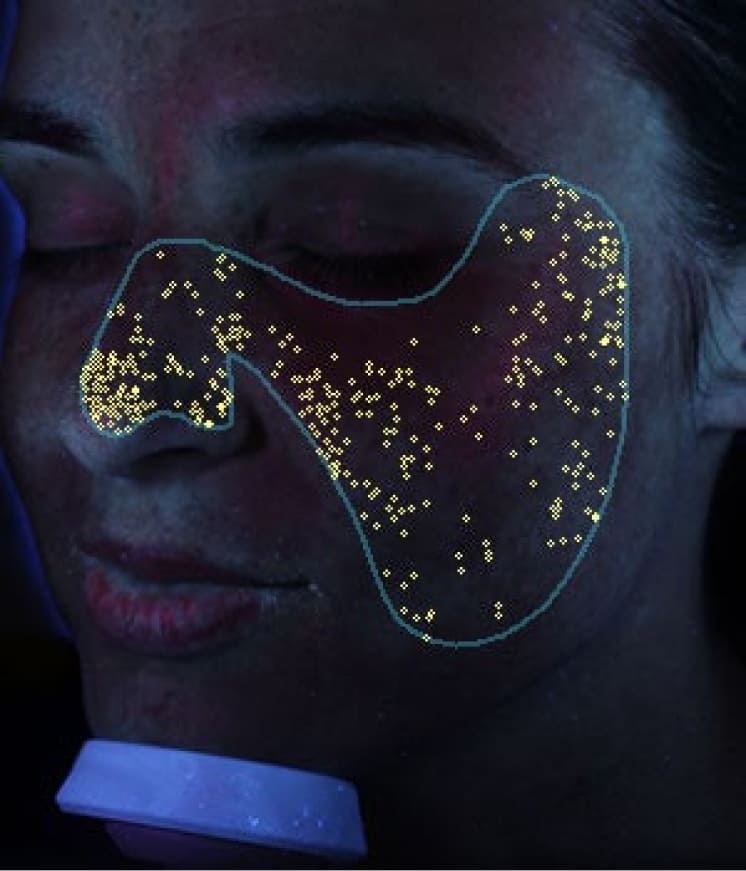 肌の表層には見られない潜在的な隠れじみを解析することが可能です。事前に隠れじみに対応することで、しみが表面化するのを防ぐ効果が期待できます。