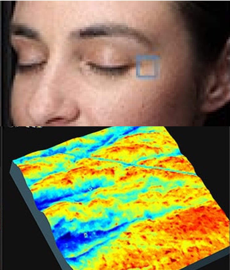 対象となる部分とその他の肌の色を比較し、皮膚表面の滑らかさをチェック。皮膚の均一性、つまり肌のキメを解析します。